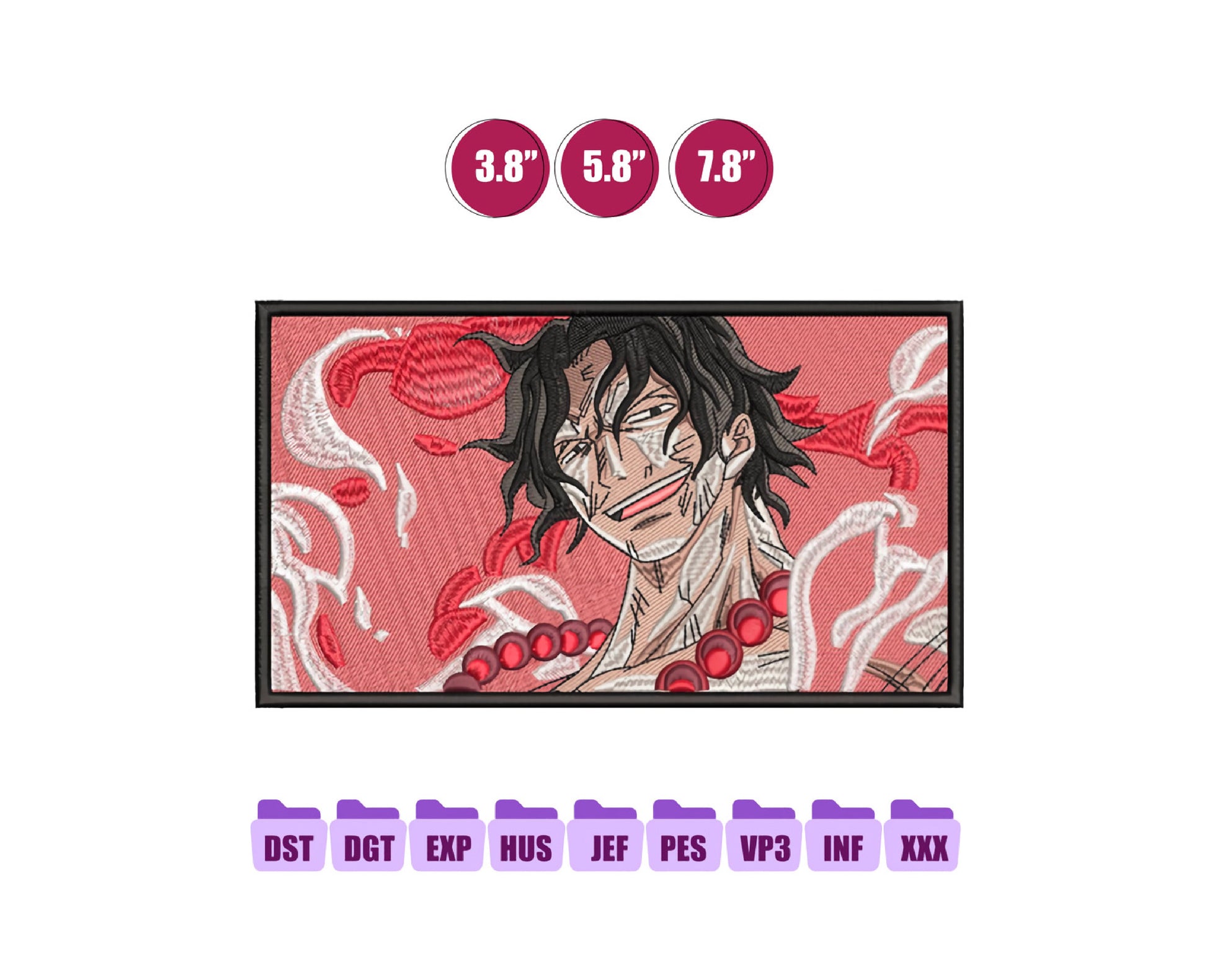 Ace Fire Anime Embroidery Design, Digital Anime Embroidery File 114